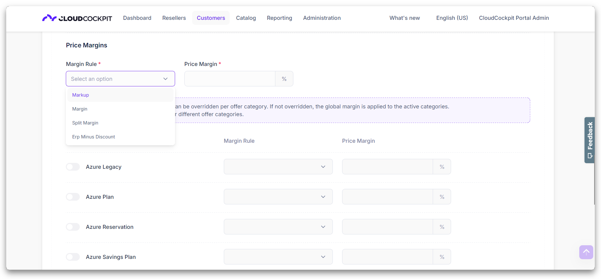 Price Margin Rule to apply to subscriptions for each provider instance.